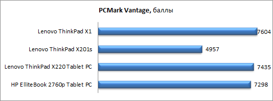 | PCMarkVantage | HP ElliteBook 2760p Tablet | Lenovo ThinkPad X220 Tablet | Lenovo ThinkPad X201s | Lenovo ThinkPad X1 |