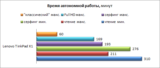 Впрочем, самый большой недостаток ThinkPad X1 — несъемный аккумулятор невысокой емкости. Из-за несоответствия мощности процессора и емкости батареи X1 уступает по части автономной работы другим тонким и легким ноутбукам (или можно уже говорить «ультрабукам»?). Таким, как Samsung 900 или Sony VAIO Z21.