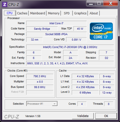 | Процессор | Intel Core i7-2630QM: 2,0 ГГц (до 2,9 ГГц в режиме Turbo Boost), 2x256 Кбайт L2, 6 Мбайт L3, четыре вычислительных ядра |