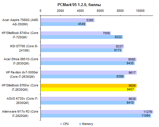 Core i7-2630QM — самый популярный четырехъядерный процессор 2011 года для мобильных компьютеров. Мы с ним уже неоднократно сталкивались, так что результаты тестирования ЦП в данном случае не представляют особого интереса.