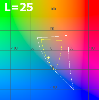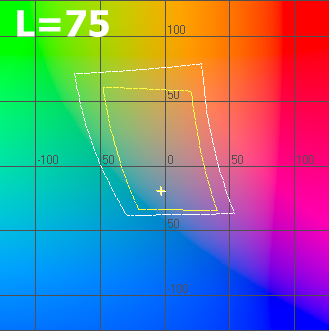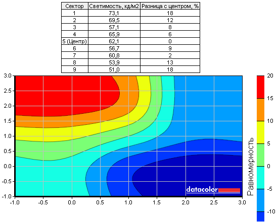 В Inspiron 14z установлен адаптер беспроводной сети Intel Wireless-N1030. На Ethernet-адаптере производитель немного сэкономил — используется гигабитный модуль производства Atheros. Управление беспроводными интерфейсами осуществляется строго средствами установленной ОС. На тестирование к нам попал полноценный коммерческий образец, поэтому комплект поставки был полным… но скудным — зарядное устройство и парочка брошюр. Ни диска восстановления ОС (впрочем, предустановленная система Ubuntu 11.10 при первой загрузке предлагает создать диск восстановления), ни полной инструкции в бумажном виде. Нет даже ткани для чистки дисплеев. Впрочем, чего ещё ожидать от ноутбука с неплохой начинкой и стоимостью менее 700 долларов США? На сайте производителя имеются драйверы не только для предустановленной Ubuntu, но и для ОС семейства Windows. ⇡#Тестирование — дисплейВ Dell Inspiron 14z используется матрица Samsung. Достоверно установить модель матрицы не удалось, но судя по всему, это LTN140AT07. Горизонтальные углы обзора матрицы довольно большие, но вертикальные недостаточны для комфортной работы, поэтому приходится постоянно либо подстраивать угол наклона дисплея, либо как-то подстраиваться самому. При максимальной яркости подсветки измерения светимости белого поля показали результат даже чуть больше заявленного для предполагаемой модели матрицы — 210,3 кд/кв.м, а светимость чёрного поля составила 3,57 кд/кв.м. О высокой контрастности в данном случае говорить не приходится, по результатам наших измерений этот показатель составляет примерно 59:1. С равномерностью подсветки тоже не всё гладко. Конечно, неравномерность особо заметна только при выведении на экран сплошной тёмной заливки, но всё же это недостаток. Измерения неравномерности яркости проводились после калибровки дисплея для двух уровней подсветки — 100% и 50%. На графиках, приведённых ниже, указано отличие яркости областей от центра дисплея. Разница дана в процентах.  Равномерность яркости при 100%-й подсветке  Равномерность яркости при 50%-й подсветке Для оценки цветового охвата использовался колориметр Spyder3. График цветового охвата строился для цветовой координатной системы Lab в координатах ab для светлости L=25, 50 и 75. На изображениях зелёная кривая — график цветового охвата дисплея тестируемого ноутбука, белая — стандартное цветовое пространство sRGB.    На иллюстрациях, приведённых ниже, отображены гамма-кривые (чёрные линии), полученные до и после калибровки дисплея, целевая гамма 2,2 (светло-синий график) и коррекция для каждого цвета (красная, синяя и зелёная линии).    Также после калибровки была измерена зависимость цветовой температуры от уровня яркости при целевом значении 6500 K. Как видно на иллюстрации, при уменьшении уровня яркости подсветки цветовая температура резко растёт, поэтому для корректного отображения цветов при пониженной яркости приходится создавать отдельный цветовой профиль.  ⇡#Тестирование — звуковая подсистемаВ ноутбуках Dell, а также в ряде ноутбуков многих других производителей, для привлечения внимания к незаурядным характеристикам встроенных в ноутбук динамиков нередко акцентируется внимание на том, что разработкой занималась компания, известная в области Hi-Fi или Hi-End аппаратуры. В случае Dell — это компания JBL. Однако у тестируемого устройства логотипа JBL на корпусе нет, что, разумеется, сразу 