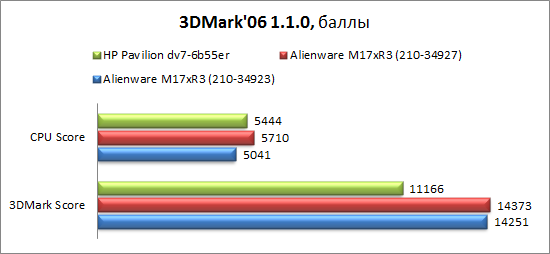 | 3DMark 2006 | Alienware M17x R3210-34923 | Alienware M17x R3210-34927 | HP Pavilion dv7-6b55er |
