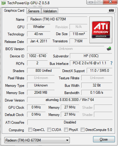 | Графический контроллер | Двойная графика, автоматическое переключение Intel HD 3000, интегрирован в процессор AMD Radeon 6770M (480 процессоров, 725 МГц), 2 Гбайт GDDR5 (4x800 МГц, шина 128 бит) |