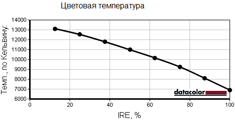 Также после калибровки была измерена зависимость цветовой температуры от уровня яркости при целевом значении 6500 K.