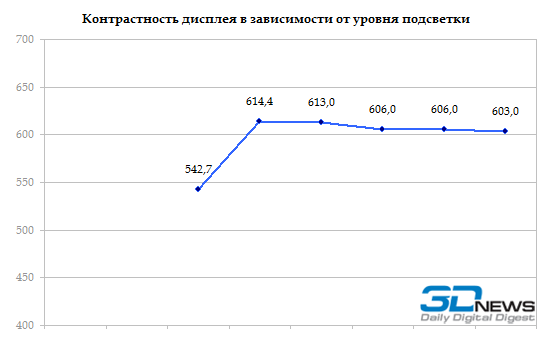Соответственно, контрастность составляет около 600:1. Это примерно в 7-9 раз больше, чем у дисплея среднестатистического ноутбука.