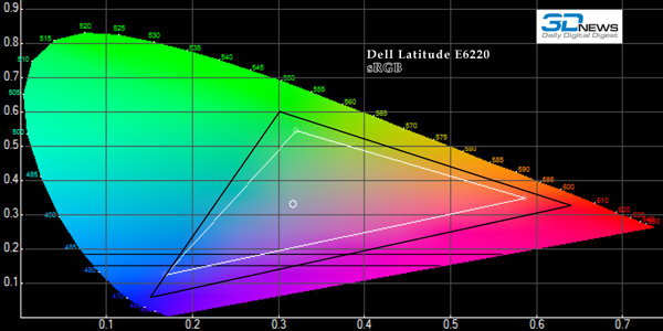 А вот светимость черного у дисплея Samsung немного ниже: 2,45 кд/м2 против 2,77 кд/м2 у экрана Dell Latitude E6220.