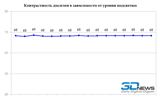 Соответственно, чуть лучше и контрастность. В данном случае она составляет порядка 68:1, а для Samsung 350U2B данный показатель достигал почти 77:1. Впрочем, порядок все равно один — и тот и другой экран с этой точки зрения весьма посредственные.