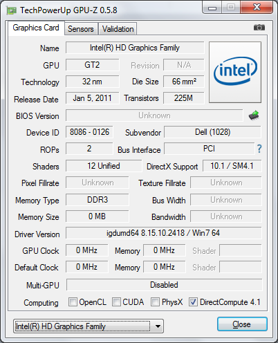 | Bluetooth | 3.0 (Dell Wireless 375 — Broadcom) |