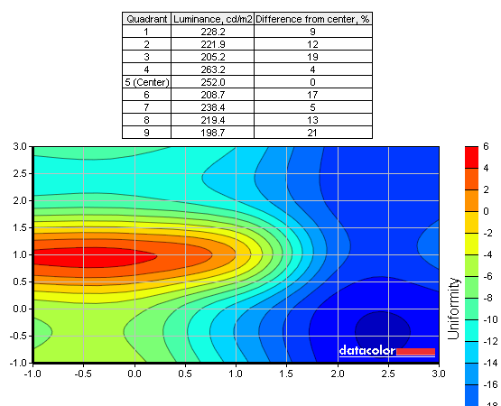 ![]() Комплект поставки ноутбука традиционно лаконичен. Однако в этот раз производитель порадовал наличием в комплекте диска восстановления системы — в наше время на нем, как правило, предпочитают экономить. ⇡#Тестирование: дисплейВ ноутбуке установлена глянцевая матрица Samsung LTN156AT18C01 с разрешением 1366х768 точек — по современным меркам маловато, но для бюджетного ноутбука нормально. Углы обзора у матрицы довольно скромные, поэтому для правильной цветопередачи угол наклона дисплея постоянно приходится подстраивать. При максимальной яркости подсветки измерения светимости белого поля показали неплохой результат — 246,3 кд/м2. Но светимость чёрного поля также оказалась высокой — 3,73 кд/м2, таким образом, контрастность составляет около 66:1, что уже является недостатком. Приходится мириться с невысокой контрастностью и плохой передачей тёмных оттенков. ![]() Равномерность подсветки при яркости 100% Для оценки цветового охвата использовался колориметр Spyder3 из комплекта Spyder3Studio. График цветового охвата строился для цветовой координатной системы Lab. На изображениях зелёная кривая — график цветового охвата дисплея тестируемого ноутбука, белая — стандартное цветовое пространство sRGB. Как можно видеть на иллюстрациях, цветовой охват оставляет желать лучшего, особенно сильно пострадали темные оттенки (см. график при L=25). На иллюстрациях, приведённых ниже, изображены гамма-кривые (чёрные графики), полученные до и после калибровки дисплея, целевая гамма 2,2 (светло-синий график) и коррекция для каждого цвета (красный, синий, зелёный). Гамма-кривые до (слева) и после (справа) калибровки Также после калибровки была измерена зависимость цветовой температуры от уровня яркости при целевом значении 6500 K. ![]() ⇡#Тестирование: звуковая подсистемаПара встроенных динамиков звучит весьма посредственно. Полное отсутствие басов и незаметный ВЧ-диапазон — это ещё только цветочки. При установке максимального уровня громкости проявляется масса недостатков: динамики иногда похрипывают, а при воспроизведении высоких и близких к ним частот ещё и скрипят. Конечно, эти недостатки проявляются нечасто, но всё же они есть. Встроенные динамики сгодятся для просмотра фильмов, не изобилующих звуковыми спецэффектами. Для прослушивания аудиокомпозиций они вовсе не подходят, и тут не помогут разнообразные программные «улучшайзеры», которые, к слову, активированы по умолчанию и крайне негативно влияют на результаты тестирования аудиотракта: с активированными по умолчанию надстройками ноутбук заработал суммарную оценку «средне», тогда как при отключенных эффектах дело обстоит заметно лучше. В основе аудиосистемы лежит довольно старый, но в то же время отлично себя зарекомендовавший кодек Realtek ALC269, который часто позволял ноутбукам получит суммарную оценку «отлично» при тестировании качества звука на аналоговом выходе. Причём данный чипсетный звук устанавливается в самых разнообразных моделях — от нетбуков до мощных игровых систем. Заявленное соотношение сигнал/шум для ЦАП и АЦП составляет 98 дБ. С более подробными характеристиками кодека можно ознакомиться на сайте производителя. Тестирование аудиотракта проводилось при помощи тестового пакета RightMark Audio Analyzer (далее RMAA) и звукового интерфейса Creative E-MU 0202 USB. Предварительно драйвера были обновлены до наиболее све