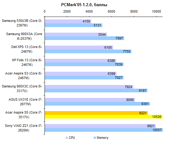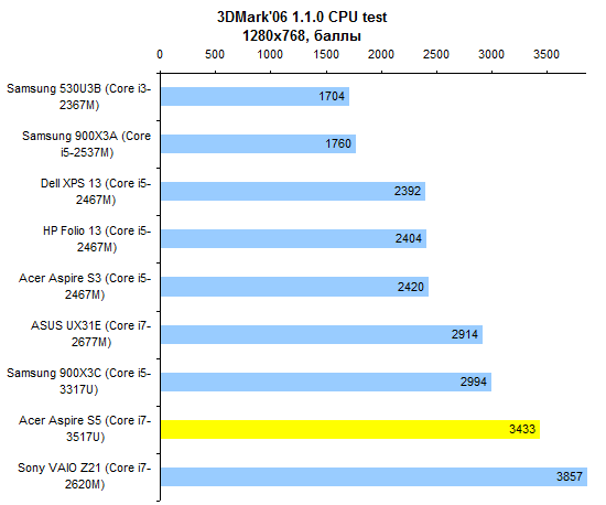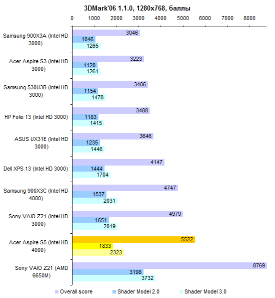 К Acer Aspire S5 это относится в чуть меньшей степени, чем к Samsung 900X3C. Но все же и здесь новое графическое ядро Intel HD 4000 не раскрывает свой потенциал полностью.