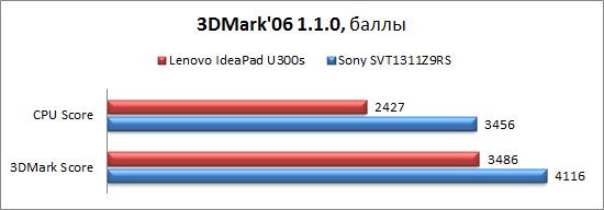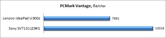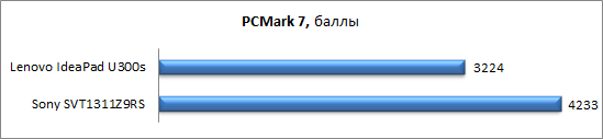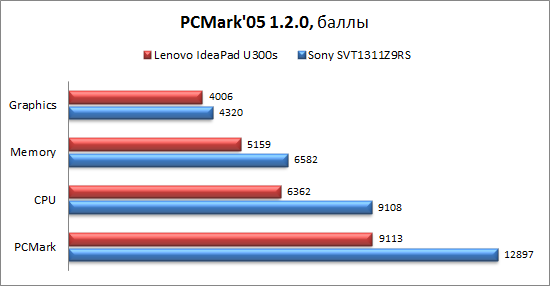 ![]() Результат лишь немного не дотянул до оценки «отлично», что стоит записать в плюсы Sony VAIO T13. ⇡#Тестирование: уровень шума и тепловой режимК сожалению, провести полное измерение температурных режимов не удалось из-за поломки кондиционера и аномальной жары, установившейся в начале июля. Поэтому ограничимся описанием общих впечатлений. Несмотря на очень высокую температуру окружающей среды (+34 градуса Цельсия), даже при работе под максимальной нагрузкой корпус в целом разогревался лишь на градус-два, а температура корпуса в районе процессора достигала 38 градусов, что стоит признать вполне неплохим результатом. Что касается уровня шума, то с ним все оказалось ещё лучше, чем у 11,6-дюймовой модели. При работе с офисными пакетами, несложной обработке графики и даже при просмотре Full HD-видео вентилятор крайне редко раскручивался до скоростей выше минимальной. При столь высокой температуре окружающей среды это весьма и весьма хороший результат. Да и в целом высокие скорости включаются нечасто. Минимальный измеренный уровень шума составляет всего 31,2 дБА, а максимальный — 36,8 дБА. Отличные показатели. Как и с младшей модификацией, мы, пользуясь случаем, провели стресс-тест: ноутбук на полчаса был выставлен под палящие лучи солнца при температуре +34 градуса Цельсия, причём не в режиме простоя, а под нагрузкой в бенчмарке Furmark. Если в тени различия в работе охлаждающих систем 13,3 и 11,6-дюймовой модификации были заметны, то в данных условиях разницы не оказалось вовсе. Более крупная модель справилась с такими издевательствами не менее успешно, чем VAIO T11. ⇡#Тестирование: производительностьВ качестве оппонента был выбран ультрабук Lenovo IdeaPad U300s, основанный на процессоре Intel Core i5-2467M со встроенным видеоадаптером Intel HD 3000. ![]()