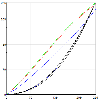 Кроме привычного комплекта поставки, включающего зарядное устройство и набор брошюр, в коробке с HP Envy 6-1051er обнаружился внешний оптический привод HP SN-208BB. Следует признать, что в современных реалиях ежедневно привод оптических дисков нужен не то что не всем, а крайне малому количеству пользователей. Но всё же иногда он бывает нужен. Поэтому его наличие можно считать плюсом. С другой стороны, ничто в этом мире не бесплатно, в данном случае привод просто автоматически включается в стоимость ноутбука. Так что если он вам не нужен, имеет смысл выбирать конфигурации Envy 6, которые поставляются без него: есть шанс сэкономить. ⇡#Тестирование: дисплейБеда многих ультрабуков — недостаточно качественный дисплей. Проблема в том, что необходимые для них тонкие матрицы стоят дороже, и, уже потратившись на обеспечение нужных размеров, производители не торопятся платить еще больше — за приличную картинку. Возможно, в более дорогих конфигурациях Envy 6 — с процессором Core i7 и внешней графикой — могут быть установлены более дорогие матрицы. Но в нашем случае это была Chimei Innolux N156BGE-L41 Заявленные характеристики матрицы не впечатляют: углы обзора 20/45/45/45 (в/н/л/п), максимальная яркость составляет 200 кд/м2. Контрастность при этом заявлена на уровне 500:1 — несложно догадаться, что речь идет о динамической контрастности. Даже заявленные характеристики дают понять, что дисплей не блещет потрясающим качеством изображения. Наши измерения показали, что при максимальном уровне подсветки светимость белого поля составляет 174,3 кд/м2, при светимости чёрного поля в районе 1,8 кд/м2. Это даёт нам статическую контрастность порядка 96:1. Результат не впечатляющий, но и не провальный. Для сравнения: в протестированном ранее тонком (заметно более дорогом) 15-дюймовом ноутбуке Sony VAIO SE1V9R была установлена матрица с контрастностью 577:1. В то же время в подавляющем большинстве ноутбуков — и ультрабуков в частности — по-прежнему используются дисплеи с контрастностью менее 80:1. Измерения равномерности подсветки проводились после калибровки дисплея для двух уровней яркости — максимальной и половинной (100% и 50%). Равномерность яркости при уровне подсветки 100% и 50% Для оценки цветового охвата использовался колориметр Spyder4 из комплекта Spyder4Elite. График цветового охвата строился для цветовой координатной системы Lab. На изображениях зелёная кривая — график цветового охвата дисплея тестируемого ноутбука, белая — стандартное цветовое пространство sRGB. Цветовой охват невелик, особенно на темных оттенках. Справедливости ради стоит отметить, что результаты измерения лучше, чем для многих ультрабуков, побывавших у нас на тестировании. Исключением тут являются разве что немногочисленные тонкие ноутбуки, оборудованные IPS-матрицами. На иллюстрациях, приведённых ниже, изображены гамма-кривые (чёрные графики), полученные до и после калибровки дисплея, целевая гамма 2,2 (светло-синий график) и коррекция для каждого цвета (красный, синий, зелёный).    Также после калибровки была измерена зависимость цветовой температуры от уровня яркости при целевом значении 6500 K. Наши измерения показали, что при падении яркости подсветки цветовая температура стремительно растёт и при минимальном уровне подсветки достигает 13500 К.  Добавим к этому результаты измерения точности (48 оттенков) и равномерности цветопередач