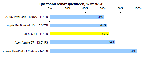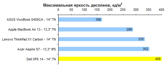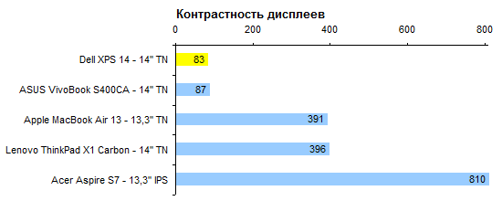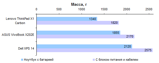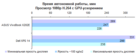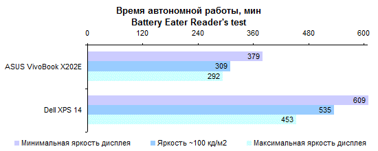 Процессор Core i5-3317U по меркам низковольтных моделей достаточно быстр. Однако наиболее требовательным пользователям его производительности все-таки может быть недостаточно, а поменять его при покупке на более быстрый ЦП в России не получится. ![]() ![]() Что касается графической системы, то GT 630, конечно, мощнее интегрированного в процессор адаптера Intel HD 4000. Но нельзя сказать, что мощнее кардинально: в среднем где-то в полтора раза. ![]() ![]() ![]() ![]() ![]() ⇡# Тестирование — батареяВ Dell XPS 14 использован аккумулятор, основанный на плоских элементах питания. Поскольку дефицита пространства внутри корпуса в данном случае нет, аккумулятор получился упитанным. И весьма емким: около 69 Вт*ч, рекордное значение среди 14-дюймовых ультрабуков. Из-за наличия внешнего графического адаптера Dell XPS 14 комплектуют сравнительно крупным и не самым легким блоком питания мощностью 90 Вт. Два с лишним килограмма — далеко не самая низкая масса для 14-дюймовой модели. Скажем прямо: это весьма высокая масса для 14-дюймового ультрабука. Ее отчасти оправдывает повышенная емкость аккумулятора и наличие дискретной графики. Вместе с блоком питания выходит даже больше 2,5 килограмм — многие «пятнашки» оказываются легче. ![]() Зато со временем работы от батареи все в порядке. В режиме чтения XPS 14 может продержаться до 10 часов. ![]() Более реалистичный сценарий — воспроизведение Full HD-видео — дает результаты порядка 4–5 часов, в зависимости от яркости подсветки. Большее значение ближе к истине, поскольку запас яркости у дисплея XPS 14 огромен. ![]() ⇡# ВыводыКак уже было сказано выше, лучше всего этот ноутбук характеризует заглушка картовода, выполненная в высшей степени тщательно. С одной стороны, такой подход внушает уважение своей солидностью. С другой стороны, все дополнительные телодвижения в конечном итоге сказываются на цене продукта. И может быть, деньги покупателя стоило потратить на что-то другое? Или со всем остальным все и так хорошо? К сожалению, хорошо в Dell XPS 14 далеко не со всем. Несложно найти, куда бы можно было пристроить те самые «лишние деньги». Например, потратить их на более качественный дисплей. А еще — на то, чтобы сделать ноутбук более легким. Или на более тщательную компоновку начинки, чтобы поместились не два USB-порта, а три или четыре — и внутри корпуса, и на его поверхности для этого достаточно места. Или вот еще вариант: за эти деньги можно было бы вместо малоемкого вспомогательного SSD установить полноценный, объемом 128 или даже 256 Гбайт, для системы и программ — а традиционный винчестер целиком оставить под данные пользователя. И Core i7 вместо Core i5, это не такой уж дорогой апгрейд. Наконец, сделать все это сразу и получить действительно идеальный ультрабук, этакий «наш ответ» MacBook Pro Retina 15 — как вам такая идейка? Жаль, что этого не вышло. Поводов полюбить Dell XPS 14 немало: превосходный корпус, замечательная сенсорная панель, хорошая клавиатура, впечатляющее время автономной работы. Однако посредственный дисплей, довольно блеклая для столь дорогого ноутбука конфигурация и — особенно — весьма высокая масса едва ли позволят довести эту любовь до логического завершения. Редакция 3DNews благодарит компанию «Графитек» за предоставленный в распоряжение нашей лаборатории измерительный комплекс Spyder4Elite.