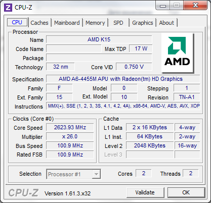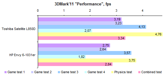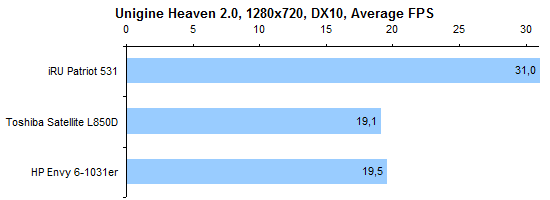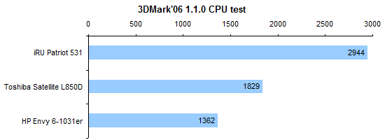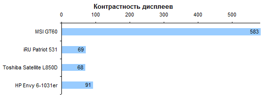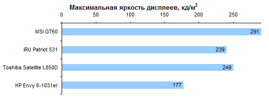 Не так давно мы протестировали ноутбук Toshiba Satellite L850D, который был оснащен процессором AMD A6-4400. Теперь же у нас на повестке дня A6-4455M. Несмотря на более высокий номер модели, это менее производительный процессор. Он также состоит из одного модуля Piledriver (два целочисленных вычислительных ядра + один FPU), но работает на менее высоких частотах: номинально 2,1 ГГц и до 2,6 в турборежиме (в A6-4400M 2,7—3,2 ГГц соответственно). ![]() Все дело в том, что теплопакет процессора понижен со стандартных 35 до 17 Вт. Чтобы слегка скрасить недостаточно высокие частоты, процессору увеличили кеш-память второго уровня — с 1 до 2 Мбайт. ![]() В ноутбуке имеется два разъема для модулей памяти формата SO-DIMM. В нашем экземпляре оба разъема были заняты — в одном был установлен модуль объемом 4 Гбайт, во втором — 2 Гбайт, оба — DDR3-1600. ![]() В процессор встроено графическое ядро AMD Radeon 7500G. Оно состоит из 256 потоковых процессоров, номинальная частота составляет 327 МГц, в турборежиме она может быть повышена до 424 МГц. ![]() ⇡# Внутреннее устройствоПростой и удобный доступ пользователя к начинке в данной модели совершенно не предусмотрен. Однако, благодаря типичной для тонких ноутбуков конструкции корпуса, добраться до «потрохов» достаточно легко. Нижняя половинка корпуса выполнена из стеклопластика — а если точнее, армированного стекловолокном полиамида, знакомого нам еще по позапрошлогодним тестам ASUS U36SD и Toshiba Satellite R840. Верхняя часть корпуса представляет собой стандартный для недорогих моделей «бутерброд» из тонкого слоя алюминия и обычного пластика ABS+PC. В данном случае комбинация материалов и формы деталей получилась довольно удачной: корпус очень жесткий, к этому просто невозможно предъявить претензии. Единственное, пластику немного не хватает жесткости в месте крепления петель крышки. Из-за этого крышка сильно болтается при тряске, несмотря на то, что сами петли достаточно тугие. Просторный корпус позволяет обойтись без тотальной экономии пространства. Впрочем, материнскую плату конструкторы все равно сделали компактной. А «лишнее» место заполнили низкочастотным динамиком и весьма внушительной батареей емкостью 60 Вт*ч. Активная часть системы охлаждения состоит из единственного вентилятора довольно крупных размеров. Забор холодного воздуха происходит через ряд мелких отверстий на днище ноутбука. Выходит «отработанный» воздух через несколько более крупные отверстия на скошенной части — таким образом, «выхлоп» направлен назад и вниз. Несмотря на то, что в ноутбуке использован процессор с пониженным тепловыделением, при работе от розетки вентилятор не замолкает ни на секунду — даже если в настройках выставлен профиль «Экономия энергии». Шумит он при этом не слишком сильно, но все-таки шумит. Что удивительно, при повышении нагрузки уровень шума остается практически тем же, что и в режиме простоя. ⇡# Тестирование — дисплейВ HP Envy Sleekbook 61031er используется почти такой же дисплей, как и в протестированном нами ранее заметно более дорогом Envy Ultrabook 6-1051er. Это дешевая и посредственная по характеристикам ЖК-матрица Chimei N156BGE-LB1 (в «братском» ультрабуке была N156BGE-L41 — разница, очевидно, минимальна). Разрешение дисплея стандартно, 1366х768, покрытие глянцевое, рамка вокруг дисплея также выполнена из маркого глянцевого пластика. Максимальная яркость дисплея оказалась невысока — всего-нав