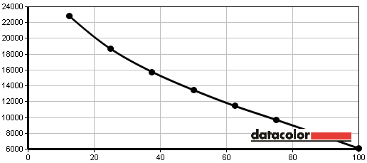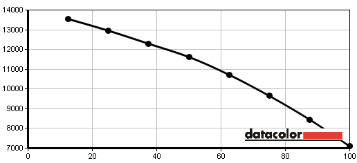 Цветовая температура в обоих случаях быстро растет при понижении яркости оттенка серого, однако дисплей LG в этом отношении чуть лучше — рост не столь бурный, как в случае матрицы Samsung.