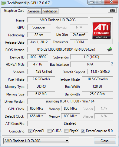 | Графика | Intel HD 2000, встроен в процессор | AMD Radeon HD7420G, встроен в процессор |