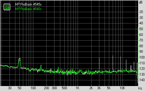Звуковой тракт обоих ноутбуков основан на одном и том же интегрированном решении IDT 92HD87B2/4, которое очень часто встречается в ноутбуках производства HP. Хотя интегрированный звук идентичен, «обвязка» у ноутбуков разная. Поэтому результаты тестирования не совсем идентичны: HP ProBook 4540s немного лучше своего родственника, хотя выигрыш и не слишком велик.