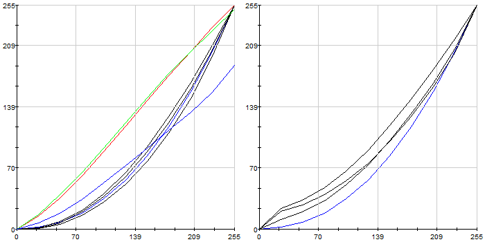 ![]() ![]() ⇡# Тестирование: дисплейВ ультрабуке установлена 14-дюймовая матрица AU Optronics B140XTN02.5 с матовой поверхностью и стандартным разрешением — 1366х768 точек. Сразу же бросаются в глаза малые углы обзора, но это далеко не единственный недостаток. Согласно заявлениям производителя матрицы, максимальная яркость составляет 200 кд/м2, а контрастность при этом заявлена на уровне 400:1. По результатам наших измерений, при максимальном уровне подсветки светимость белого поля составила 196,1 кд/м2, что весьма близко к заявленному. Однако светимость чёрного поля в тех же условиях достигает 2,63 кд/м2. Так что ни о каких 400:1 не может быть и речи — статическая контрастность составляет всего лишь 74:1. Равномерность яркости при уровне подсветки 100% и 50% (после калибровки) Цветовой охват дисплея Lenovo ThinkPad T430u составляет 63% от пространства sRGB. Мало, но в ноутбуках все еще принято ставить «блеклые» матрицы — даже многие более качественные экраны обладают узким охватом. График цветового охвата в системе Lab. Зеленая линия — цветовой охват дисплея Lenovo ThinkPad T430u; белая — стандартное цветовое пространство sRGB На иллюстрациях, приведённых ниже, изображены гамма-кривые (чёрные графики), полученные до и после калибровки дисплея, целевая гамма 2,2 (светло-синий график) и коррекция для каждого цвета (красный, синий, зелёный). ![]() Цветовая температура градаций серого быстро растет при понижении яркости оттенка — дисплей очень холодный, настроить его в Lenovo даже не пытались. ![]() Добавим к этому результаты измерения равномерности цветопередачи при яркости подсветки 50 и 100%. Равномерность цветопередачи при уровне подсветки 100% и 50% Как видно на следующей диаграмме, отклонение Delta E очень велико. По некоторым оттенкам оно даже выходит за рамки шкалы, предусмотренной создателями программного обеспечения Spyder4. ![]() В общем, данный дисплей строго противопоказан для работы с графикой. Да и с текстом при столь низкой контрастности и узких углах обзора работать будет не особенно приятно. По большому счету, у экрана Lenovo ThinkPad T430u есть только одно достоинство — матовое покрытие. По всем остальным параметрам сплошные минусы. В не самом, мягко говоря, дешевом ультрабуке можно было использовать и более приличную матрицу. ⇡# Тестирование: звуковая подсистемаПод декоративной решёткой, рядом с основанием экрана установлена пара крохотных, маломощных динамиков. На максимальной громкости они захлёбываются на басе и особенно на ударных — искажения исчезают лишь на 3/4 от максимального уровня звучания. Также среди недостатков динамиков ThinkPad T430u — довольно узкий частотный диапазон и слабая детализация звука. В общем, получить удовольствие от прослушивания любимых музыкальных композиций с их помощью не получится. Однако для просмотра учебного или рекламного (вы же часто это делаете, да? — прим. ред.) видеоматериала динамики вполне сгодятся. Звуковой тракт ультрабука основан на Realtek ALC269. Этот кодек был представлен уже достаточно давно, но до сих пор является лидером в области ноутбучного звука. Конечно, уже существуют решения, которые способны обеспечить реальное, а не заявленное соотношение сигнала и шума около 105 дБА, но всё же общая звуковая картина у старичка ALC269 пока ещё лучшая, и подтверждением тому является наибольшее количество высших оценок в бенчмарке RMAA. К сожалению, провести исследование
