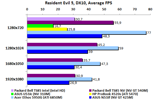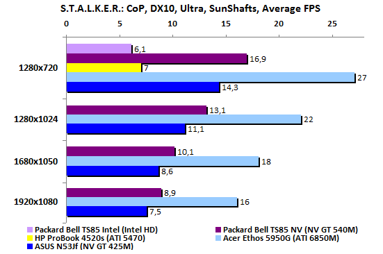 Очевидно, для GT 425M пропускной способности памяти вполне достаточно, а вот более высокочастотному GT 540M уже «тесновато». Поэтому в реальных играх результаты разнятся не так сильно.