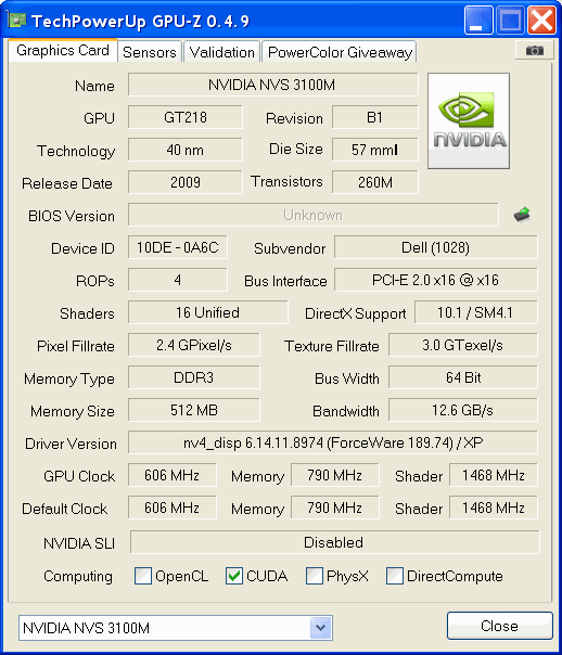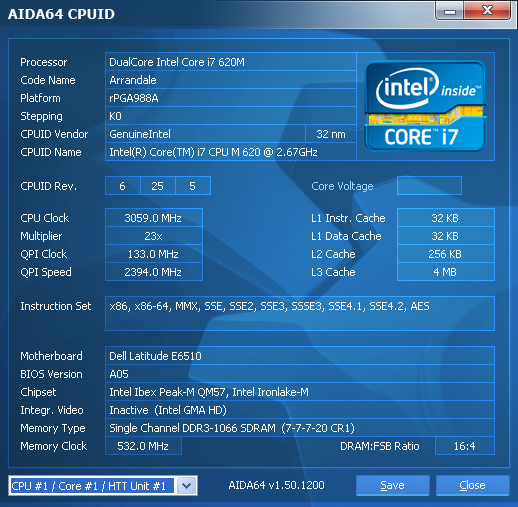 • Dell Latitude E6510 (Intel Core i7-620M 2,67 ГГц, NVIDIA NVS 3100M 512 Мбайт, 4 Гбайт ОЗУ).