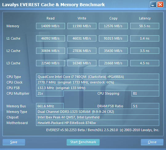 HP Elitebook 8740w VG333AV#ACB. Информация о процессоре  HP Elitebook 8740w VG333AV#ACB. Информация видеоадаптере  HP Elitebook 8740w VG333AV#ACB. Тестирование кеша и памяти  HP Elitebook 8740w VG355AV#ACB. Информация о процессоре  HP Elitebook 8740w VG355AV#ACB. Информация видеоадаптере  HP Elitebook 8740w VG355AV#ACB. Тестирование кеша и памяти ⇡#Комплект поставкиВнешне ноутбуки – близнецы, да и внутри много схожего, но комплекты поставки существенно отличаются. Обе модификации комплектуются зарядным устройством, огромным набором разнообразных брошюр, а вот количество оптических дисков, вложенных в коробку, различно. У модификации на базе видеоадаптера NVIDIA в коробке был обнаружен лишь один диск – WinDVD8. В модификации на базе видеоадаптера ATI количество дисков значительно большее - целых шесть, что встречается впервые среди всех протестированных нами ноутбуков. Итак, кроме диска с ПО WinDVD8 также два диска с 32-битной и 64-битной версией дополнительного ПО и драйверов, диск восстановления ОС Windows 7, диск с ОС Windows XP SP3, а также диск с драйверами и дополнительным ПО для Windows XP. ⇡#Внешний вид и удобство использованияВид общий Даже подсознательно от ноутбука за 2,5-2,8 тысячи "зелёных" ожидаешь только самое лучшее качество и сборку, и тут Elitebook оправдывают ожидания. Внешность ноутбуков из этой линейки не сильно отличается от более доступной серии ProBook, но некоторые важные отличия всё же есть. Во-первых, металлические панели выкрашены под титан, а не тёмно-коричневым лаком, во-вторых, у тестируемых ноутбуков нет ни единой глянцевой панели и наконец, в-третьих, клавиатура не островного типа, а более классическая, но со ступенчатым профилем. Вид общий Отпечатки на серых панелях менее заметны, чем на темно-коричневых металлических, но всё же увидеть их можно, поэтому периодически корпус приходится протирать. А вот поцарапать металлические панели довольно сложно, да и по заявлению производителя они устойчивы к царапинам благодаря покрытию HP DuraFinish. Качество сборки безупречно и придраться не к чему, даже если очень сильно хотеть найти изъян. Жёсткость корпуса очень высокая, поэтому, даже приложив ощутимые усилия, прогнуть большой корпус со сравнительно небольшой толщиной не удалось, да и выжать во время подобных экзекуций какой либо треск или скрип также невозможно. Впрочем, это и не удивительно, ведь корпус ноутбука сделан на базе рамы из магниевого сплава и осей из закаленной стали. Вид спереди Спереди находится кнопка замка крышки ноутбука, пара стандартных аудиоразъёмов, слот установки карт памяти, пара динамиков, а также четыре индикатора состояния активности, пояснительные пиктограммы к которым нанесены на краю панели рабочей области и на передней грани крышки. Вид сзади Всю тыльную сторону занимает аккумулятор и большая вентиляционная решётка. Вид слева Слева находится ещё одна решётка вентиляции, а также разъём подключения замка безопасности, гнездо подключения внешнего источника питания, порты подключения внешних дисплеев D-Sub (VGA)и DisplayPort, который особенно актуален для организации многодисплейного рабочего места, кроме того, тут находятся порт USB и IEEE 1394, слот установки карт расширений ExpressCard 54 мм и слот чтения смарт-карт. Вид справа Правая сторона также довольно загружена: коммуникационные разъёмы RJ-11 и RJ-45, BD-привод, а также порт eSATA и три порта USB, два из которых версии 3.0, но, в отличие от материнских плат десктопов,