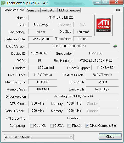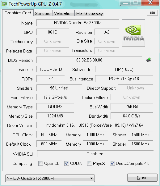 В этот раз на тестирование попали сразу две модификации одной модели, так называемой Mobile WorkStation, - HP Elitebook 8740w, которые отличаются лишь видеоадаптерами - NVIDIA Quadro FX 2800M и ATI FirePro M7820, а в остальном они идентичны: по 8 Гбайт ОЗУ и по 500 Гбайт дискового пространства, а также четырехъядерный процессор Intel Core i7-740QM. Конечно, существует множество модификаций с различными процессорами и объёмом ОЗУ, но для возможности прямого сравнения были выбраны максимально схожие, но с видеоадаптерами от разных производителей. На счету NVIDIA - технология CUDA и 256-битная шина, а адаптер ATI может похвастаться поддержкой DirectX 11 против DX10 у NVIDIA и памятью GDDR-5 против GDDR-3. Вид общий