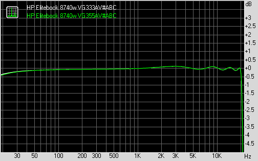 Также после калибровки дисплеем была измерена зависимость цветовой температуры от уровня яркости при целевом значении 6500K. Зависимость цветовой температуры от уровня яркости подсветки ⇡#Звуковая подсистемаВ обеих модификациях установлены совершенно одинаковые динамики и аудиокодеки, поэтому и звучат они совершенно одинаково. Звучание достаточно детализированное и чёткое, заметен ВЧ- диапазон, который для ноутбука весьма неплох, а вот с басами полный завал – их нет вовсе, даже хуже, чем у некоторых откровенно бюджетных моделей. Но в целом звучание всё же весьма неплохое. В ноутбуке используется чипсетное решение IDT 92HD75B3X5 - это четырёхканальный аудиокодек поддерживающий 24-битный звук и частоту дискретизации до 192 кГц. Производителем заявлено соотношение сигнал/шум 95 дБ и динамический диапазон 93 дБ. С более подробными характеристиками чипсетного звука можно ознакомиться на сайте производителя. Тестирование аудиотракта производилось в пакете RightMark Audio Analyzer (далее RMAA) при помощи звукового интерфейса Creative E-MU 0202 USB. Все спецэффекты отключены, настройки эквалайзера по умолчанию. Перед началом тестирования драйвер аудиокодека был обновлен до наиболее свежей версии на момент написания материала. Режим работы: 16-бит, 44 кГц. ⇡#Общие результаты