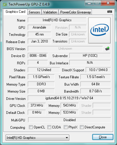 Данная модель во всех конфигурациях оснащается только встроенной в процессор графикой Intel GMA HD — более производительные решения для HP ProBook 5320m недоступны.