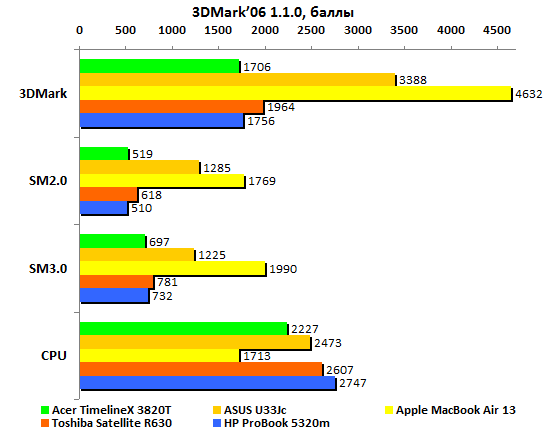 Интегрированная графика Intel прошлого теперь уже поколения обладает весьма невысокой производительностью, исключающей всякую надежду на поддержку современных игр. Впрочем, приличные графические адаптеры в 13-дюймовых ноутбуках — очень большая редкость.