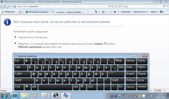 Основная проблема Lenovo IdeaPad S10-3t в том, что в планшетном режиме этот нетбук практически бесполезен. А все потому, что поддержка "ручного" управления в Windows 7 реализована, мягко говоря, неудачно. Примеров можно привести массу, но, пожалуй, хватит и одного - самого яркого. Речь об экранной клавиатуре.