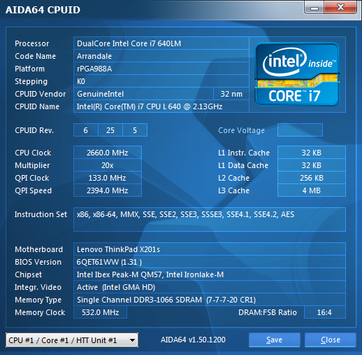 | Процессор | Intel Core i7-640LM |