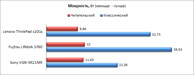 Дополним это сравнительной диаграммой, демонстрирующей потребление энергии в режимах «Классический» и «Читательский» пакета Battery Eater Pro.