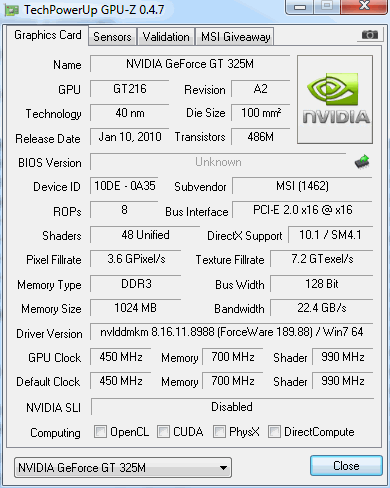 | MSI FX600 (NVIDIA) | MSI FX600 (NVIDIA, turbo) | MSI FX600 (intel GMA) | MSI FX600 (intel GMA, turbo) |