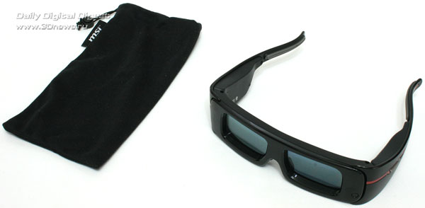 Очки сами по себе не слишком удобны – их форма не особо удачна, мягких сменных накладок на переносицу нет, а при их использовании заметно тихое жужжание, исходящее из левой дужки. Также стоит отметить, что очки взаимодействуют с монитором не по радиоканалу, а по ИК (с левой стороны в очках установлен ИК-порт), поэтому синхронизация часто теряется, а очки около секунды сходят с ума, закрывая на длительный промежуток времени то один, то другой глаз, после чего отключаются. Конечно, определённое рациональное зерно в таком подходе есть – зачем очкам работать, когда они не направлены на монитор? Кроме того, очки также начинают сходить с ума при использовании любого ИК-пульта дистанционного управления, например, от климатической системы, проектора и даже пульта из комплекта поставки моноблока. Пульт не обязательно направлять на приёмник очков - достаточно сигналов отражённых от стен. К счастью, мерцание пропадает сразу же после прекращения нажатия на кнопки пульта. Аккумуляторы очков интегрированы в дужки, их заряд производиться от USB-шины моноблока. Время зарядки засечь не удалось, однако стоит отметить, что в целом этот процесс довольно быстрый (менее 2-х часов), а время автономной работы велико – за 3 дня активного использования посадить аккумулятор так и не удалось.