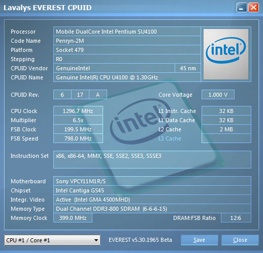 ![]() SONY VAIO VPC-Y11M1R/S. Информация о процессоре.