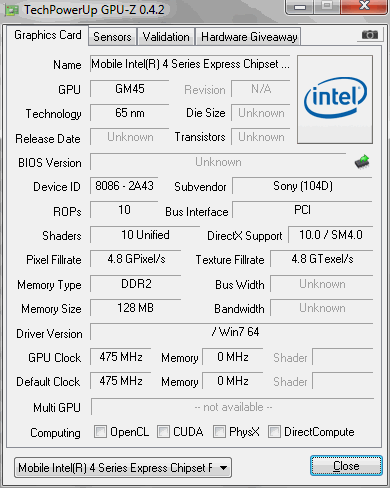 ![]() SONY VAIO VPC-Y11M1R/S. Информация о интегрированном видео.