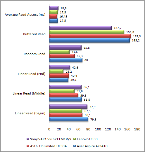 ![]() Температурный режим. Рабочая область. ⇡#ПроизводительностьСтоит напомнить, что ноутбук Sony VAIO VPC-Y11M1R/S построен на связке процессора Intel SU4100 и интегрированного видео Intel GMA X4500MHD, оснащен 4 Гб ОЗУ, а в качестве основной ОС установлена Windows 7 Home Premium. В качестве оппонентов были выбраны следующие ноутбуки: