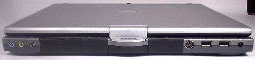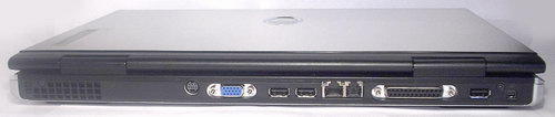 Все основные разъемы расположены сзади. За вентиляционными отверстиями идет S-Video выход, VGA выход для внешнего монитора, пара USB 2.0 портов, порты RJ-45 и RJ-11 для подключения компа к локальной сети и телефонной линии, LPT порт, третий USB 2.0 порт, а также порт IEEE 1394.