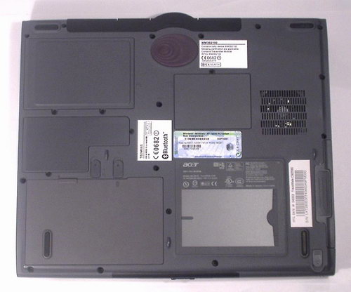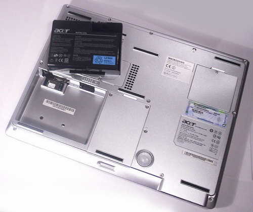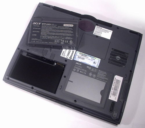Ну, а низ ноута традиционно выполнен в стиле "доступно все", что необходимо, разумеется. Тут само-собой и компактная аккумуляторная батарея с клавишей-блокиратором от случайного открытия,