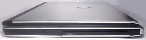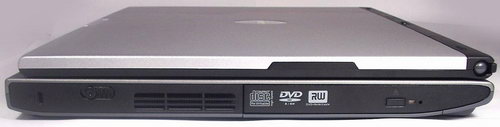 По левому борту расположен слот для чтения карт PCMCIA Type II, а также оптический привод без всяких выезжающих наружу частей, что для ноутбука особенно актуально - просто щель с кнопкой.