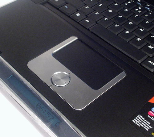 Под клавиатурой расположен миниатюрный TouchPad с парой серебристых клавиш и характерным Acer-овским джойстиком между ними.