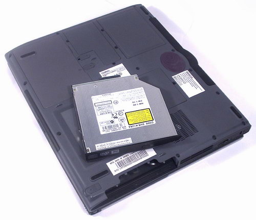 Кроме того, как уже говорилось, оптический привод извлекается из ноута очень просто - сдвиньте замок и тащите.