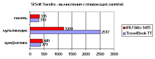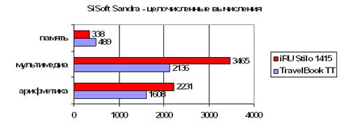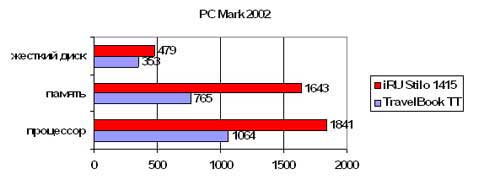 В целом, выводы этих тестов очевидны: iRU Stilo 1514 работает значительно быстрее своего конкурента. Единственное, в чем TravelBook TT обошел Stilo 1514 - это доступ к памяти при работе с мультимедиа приложениями. Скорее всего, это обусловлено наличием выделенного контроллера памяти. Однако итоговая производительность Stilo заметно выше.