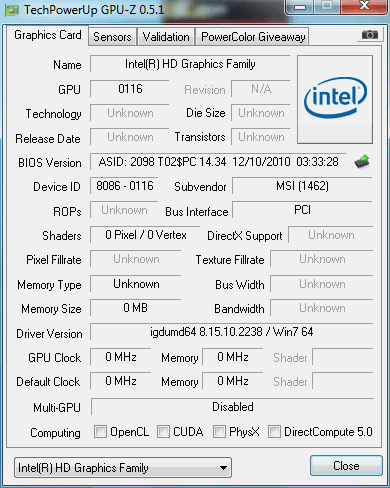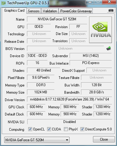 | MSI CX40 NVIDIA GT 520M (Windows 7) | MSI CX620MX Intel GMA (Windows 7) | MSI CX620MX ATI Radeon HD545v (Windows 7) | HP ProBook 4525s (Windows7) |