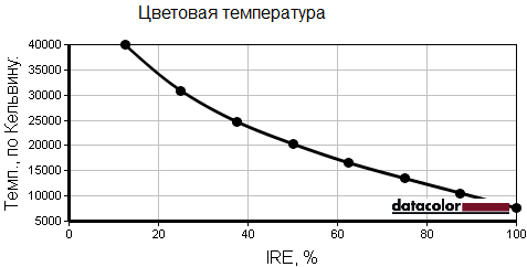 Также после калибровки была измерена зависимость цветовой температуры от уровня яркости при целевом значении 6500 K.