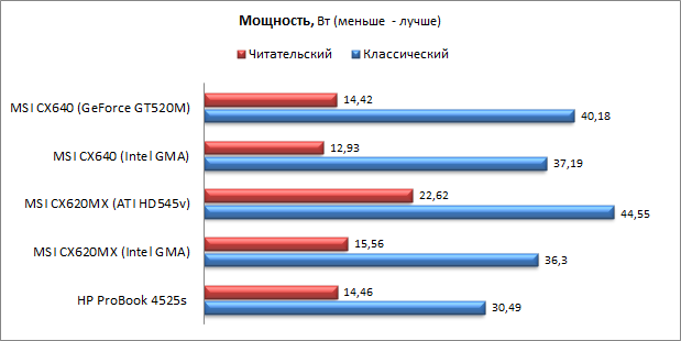 Сводная диаграмма энергопотребления в режимах «Классический» и «Читательский»
