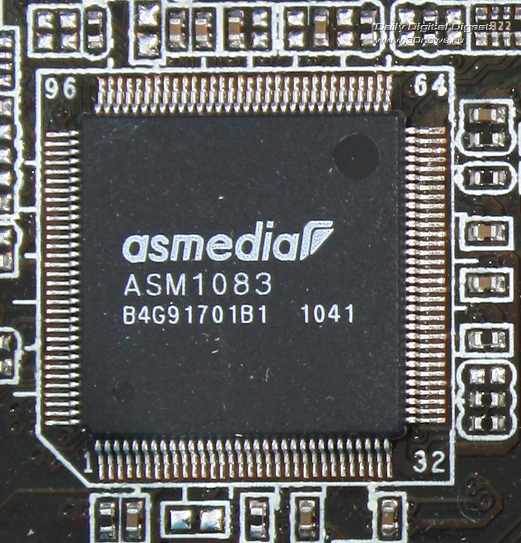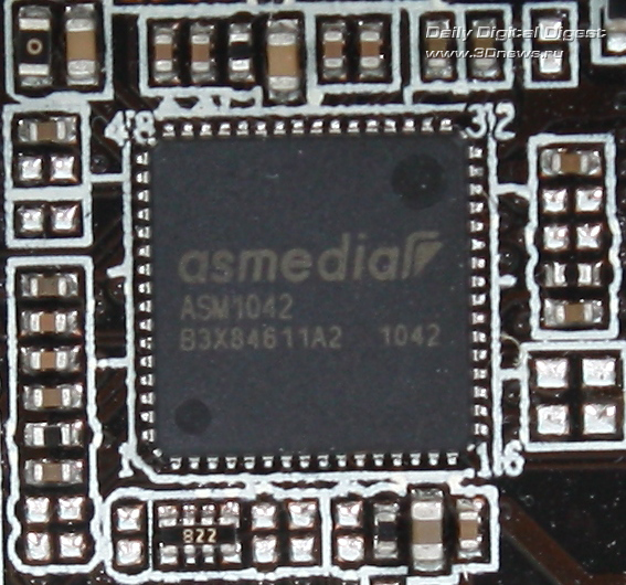 Разъёмы USB 3.0 реализованы посредством ещё одного моста, PCI-E→USB 3.0, основанного на контроллере Asmedia ASM1042.