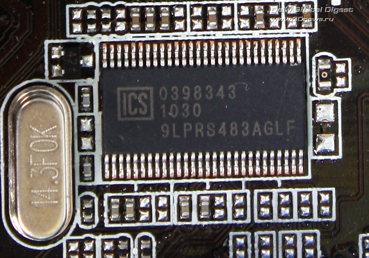 Задаёт тактовую частоту системной шины генератор, основанный на микросхеме ICS.