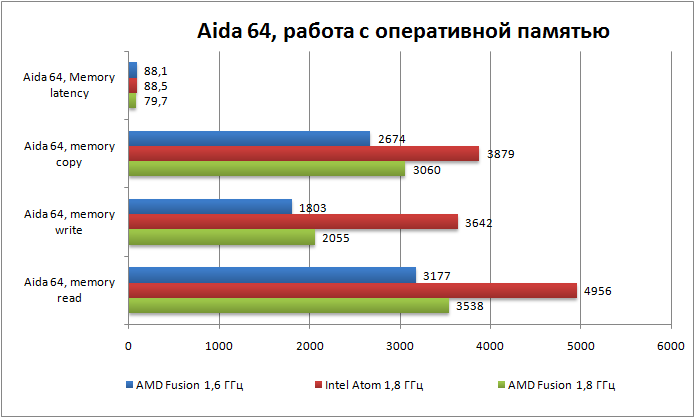 В тестах работы с оперативной памятью, Atom уверенно лидировал, однако особую роль, конечно, здесь сыграла более низкая частота памяти, выставленная автоматически системой от AMD.