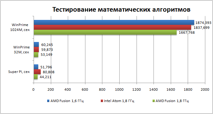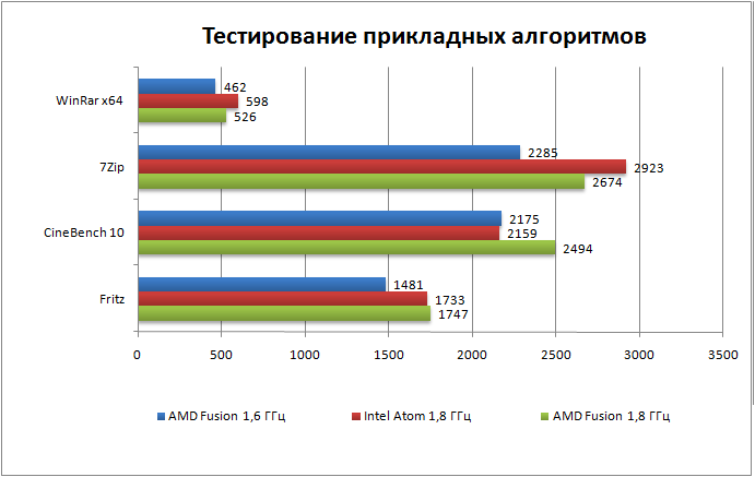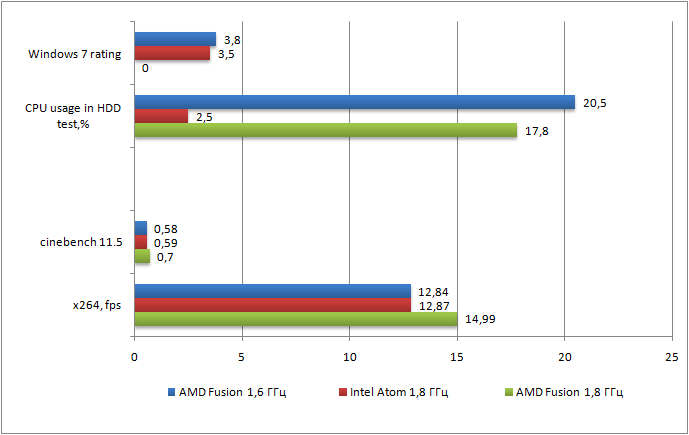 AMD Fusion 1,6 ГГц Intel Atom 1,8 ГГц AMD Fusion 1,8 ГГц